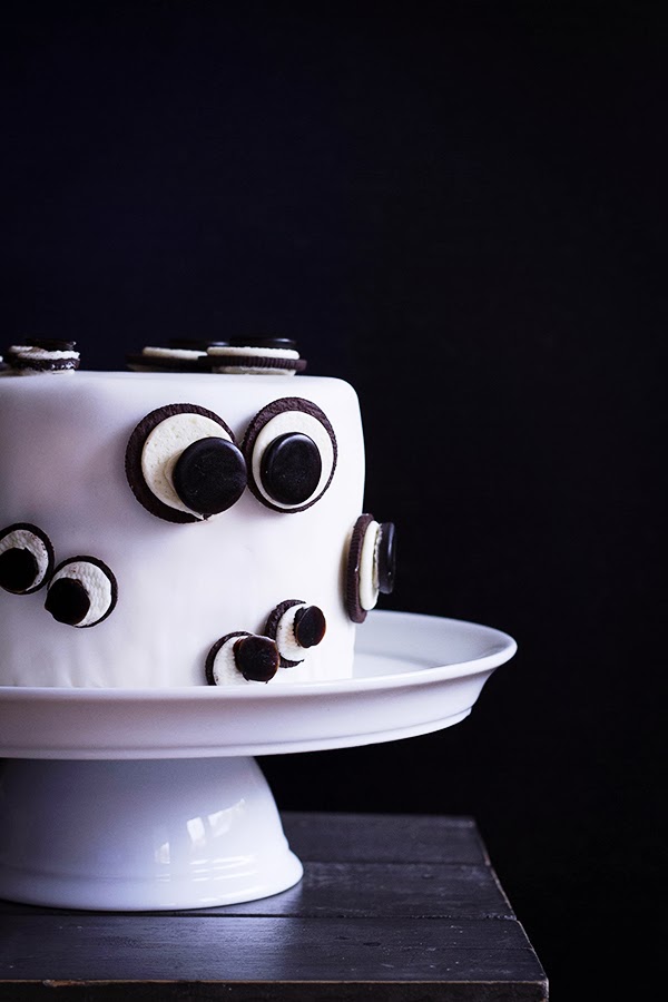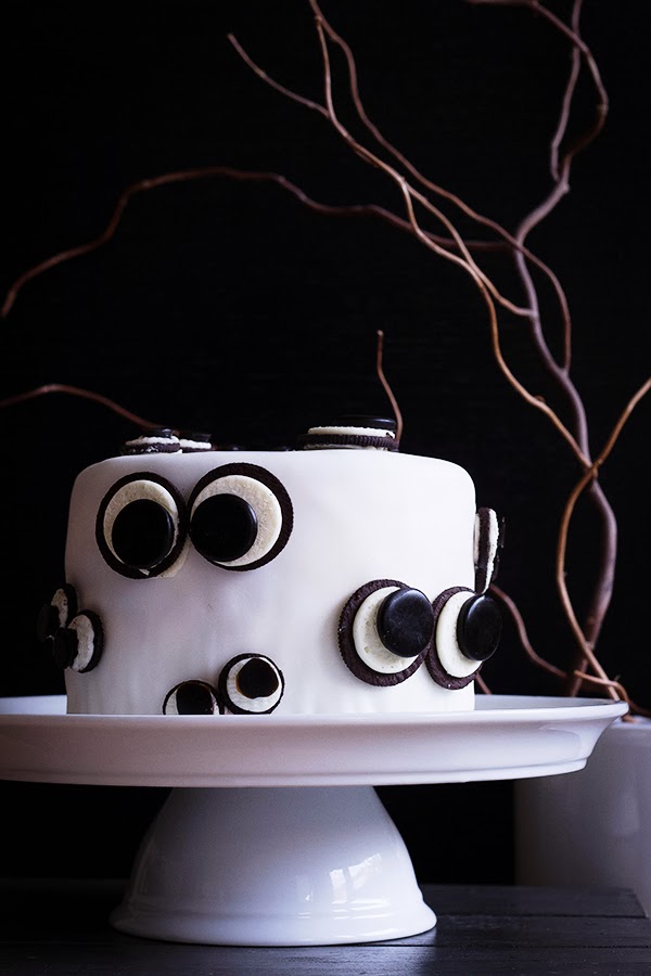 Dekoriert die Torte mit so vielen Spooky Eyes wie ihr möchtet.PS: Ich hatte nicht mehr genug Swiss Meringue Buttercream eingefroren und hab daher die Torte noch mit Fondant überzogen.