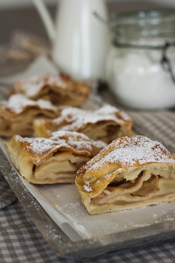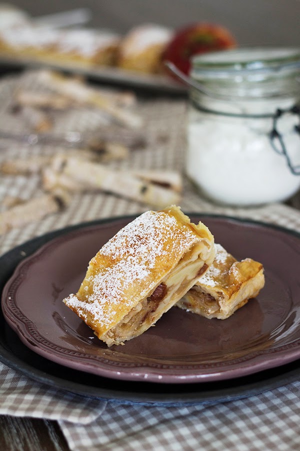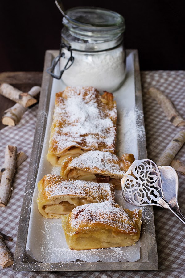ich liebe apfelstrudel. leider bekommt man bei uns fast nirgendwo mehr säuerliche äpfel im handel. ans ausziehen des teiges hab ich mich selbst noch nie herangewagt, aber vielleicht sollte ich mich einfach einmal trauen…