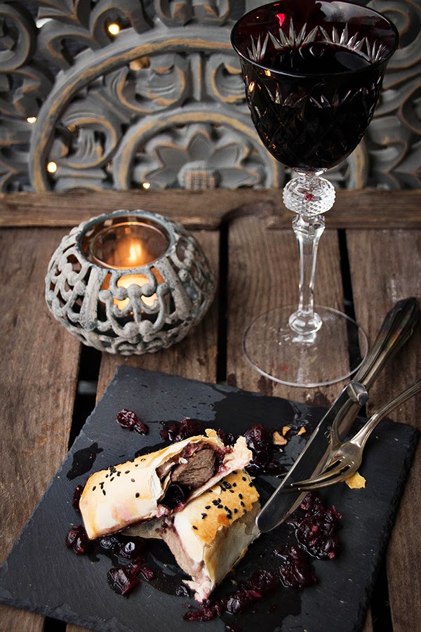 {Feiertagsleckerei} Lamm im Strudelteig mit Portwein-Cranberries