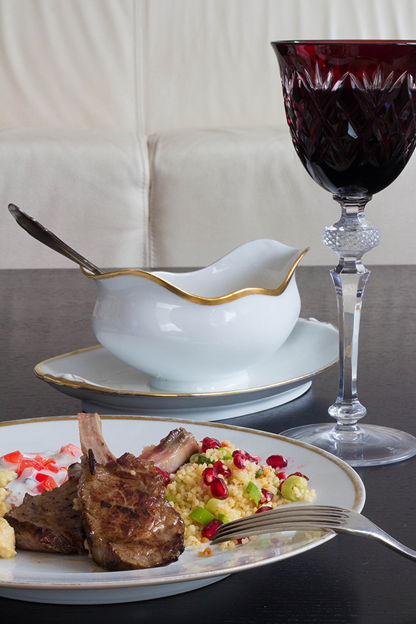 Für alle, die noch auf der Suche nach einem etwas anderen Osterrezept sind: Lamm – heute mal orientalisch inspiriert. Mariniert in Minze, Zitrone, Knoblauch und Rosmarin und im Ofen rosa und butterzart gebraten. Dazu: Einen easypeasy Granatapfel-Couscous und zum Dippen Hummus, diese oberköstliche Paste aus Kichererbsen und Sesam. Und einen frischen Tomaten-Minz-Joghurt. Dazu ein schönes Glas Shiraz – und Ostern kann kommen.